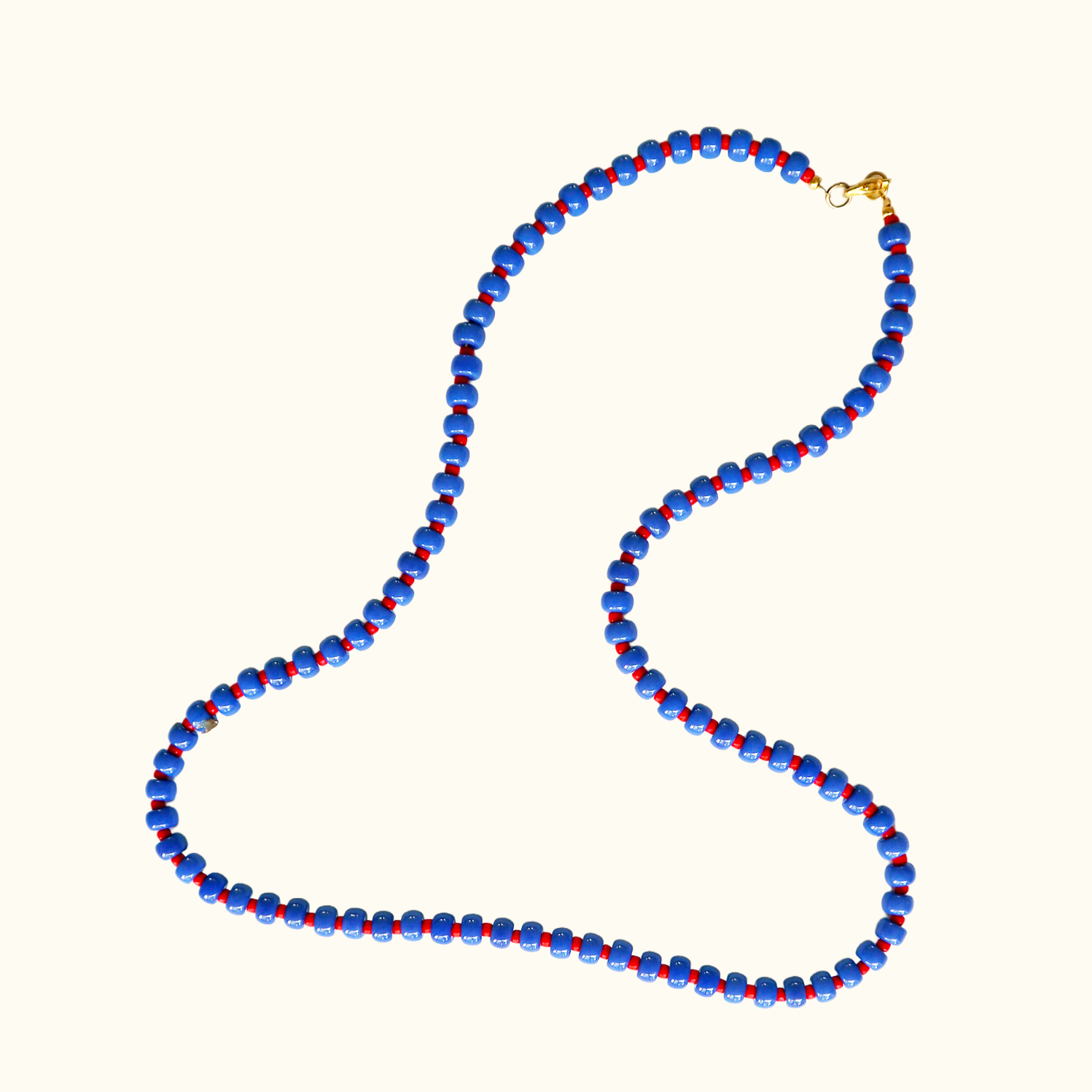 Rode miyuki kralen afgewisseld met grotere blauwe.