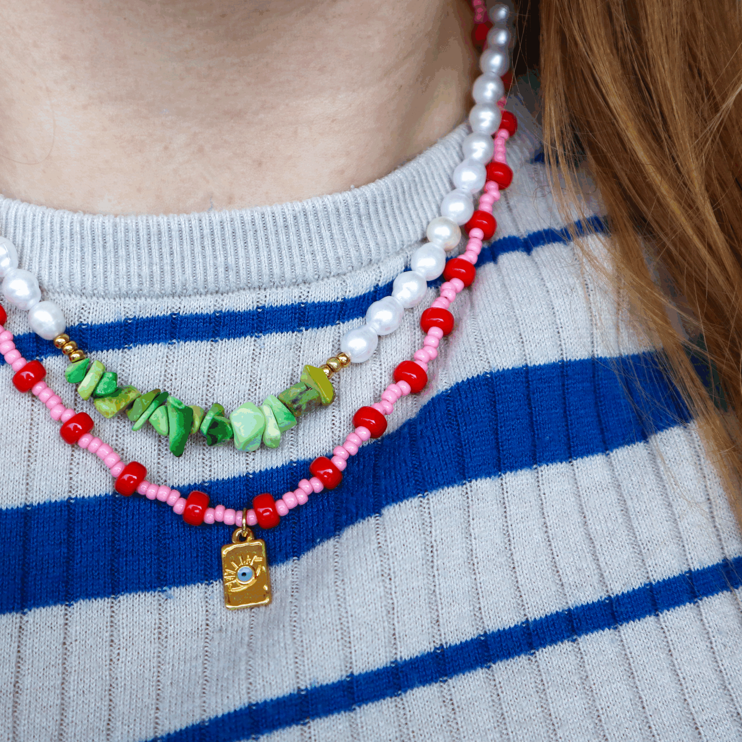 Om ervoor te zorgen dat je ketting lang meegaat, vermijd contact met parfum, shampoos, sprays en andere soorten chemicaliën. Bewaar je sieraden zoveel mogelijk droog en stofvrij.